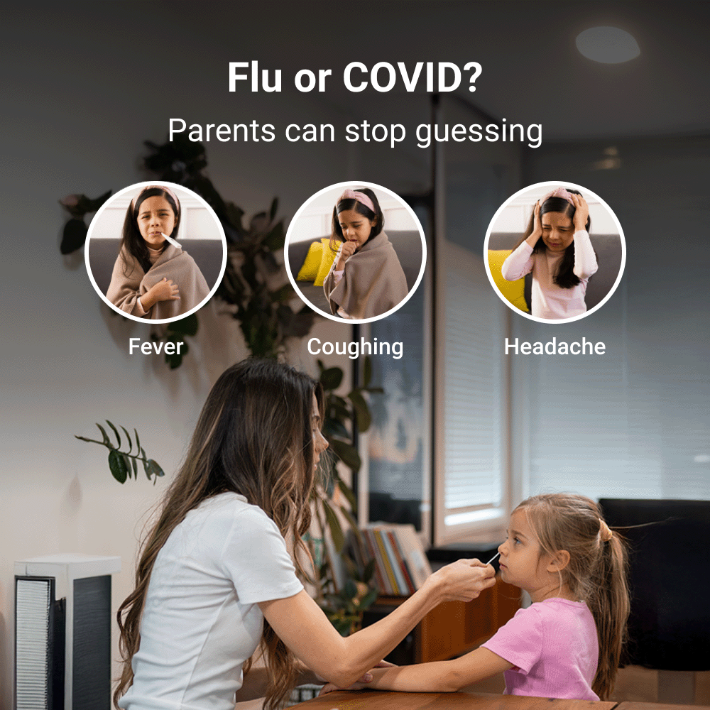 Unsure if your respiratory symptoms, such as fever, sneezing, cough, or fatigue, are from COVID or flu? With this at-home 3-in-1 rapid test, quickly find out and get the right care for you and your family. Winner of a Best in Biz Award for Best New Healthcare & Medical Product.