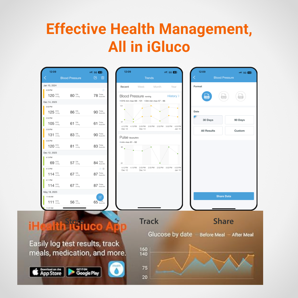 - Effortless wireless sync for anytime, anywhere management. Store up to 500 readings in the iHealth glucose monitor kit and access unlimited readings on your iOS or Android device via the free iHealth Gluco-Smart app. Seamlessly integrated memory and app enable easy access to your complete blood glucose history and share results with your healthcare team.