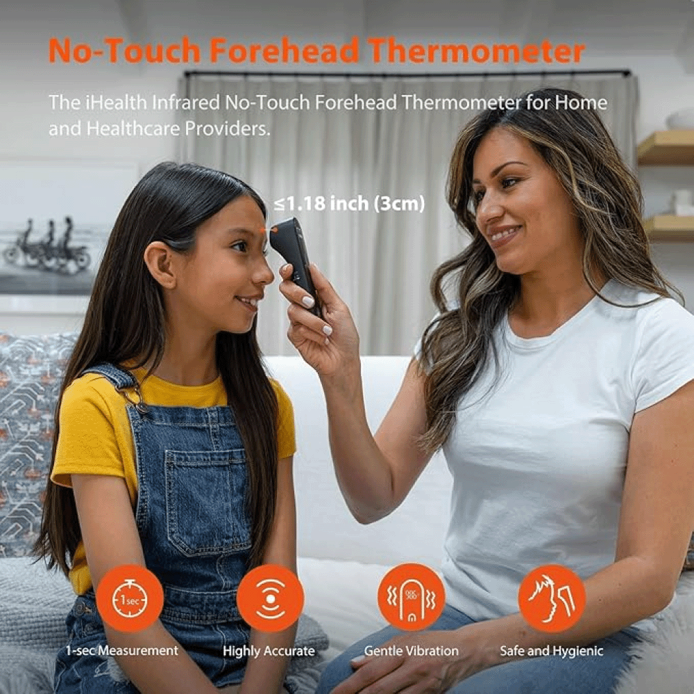 - Non-contact technology for safe & hygienic use. With a built-in infrared temperature sensor, the iHealth no-touch thermometer can read a person’s body temperature within 1.18 inches from the center of the forehead without physically touching the person.